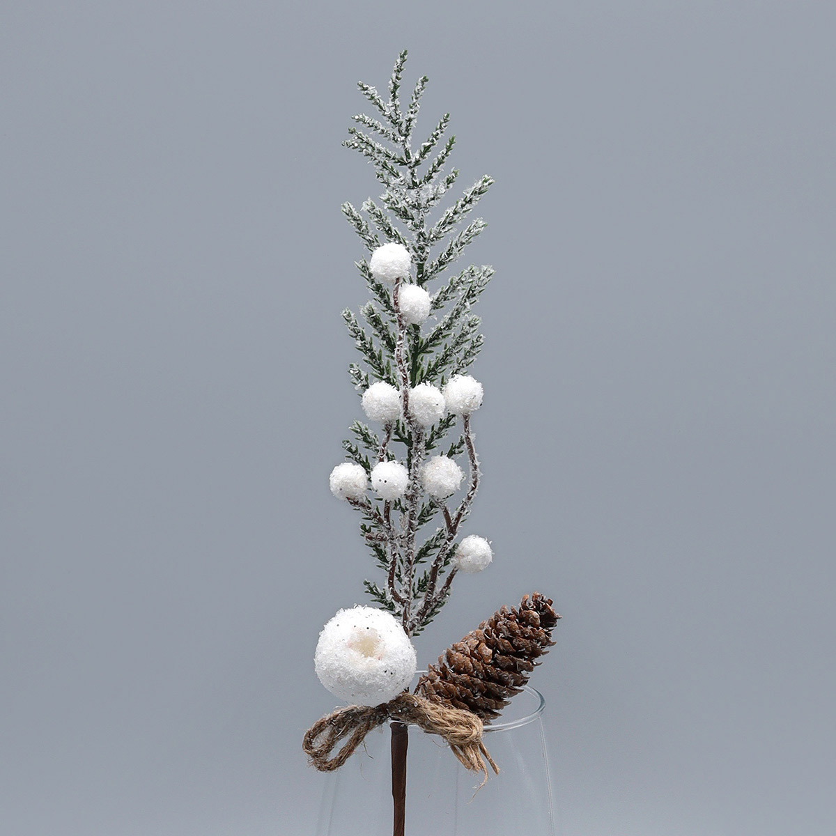 Ветка сосновая с шишкой и белыми ягодами, снежная, XW23-134