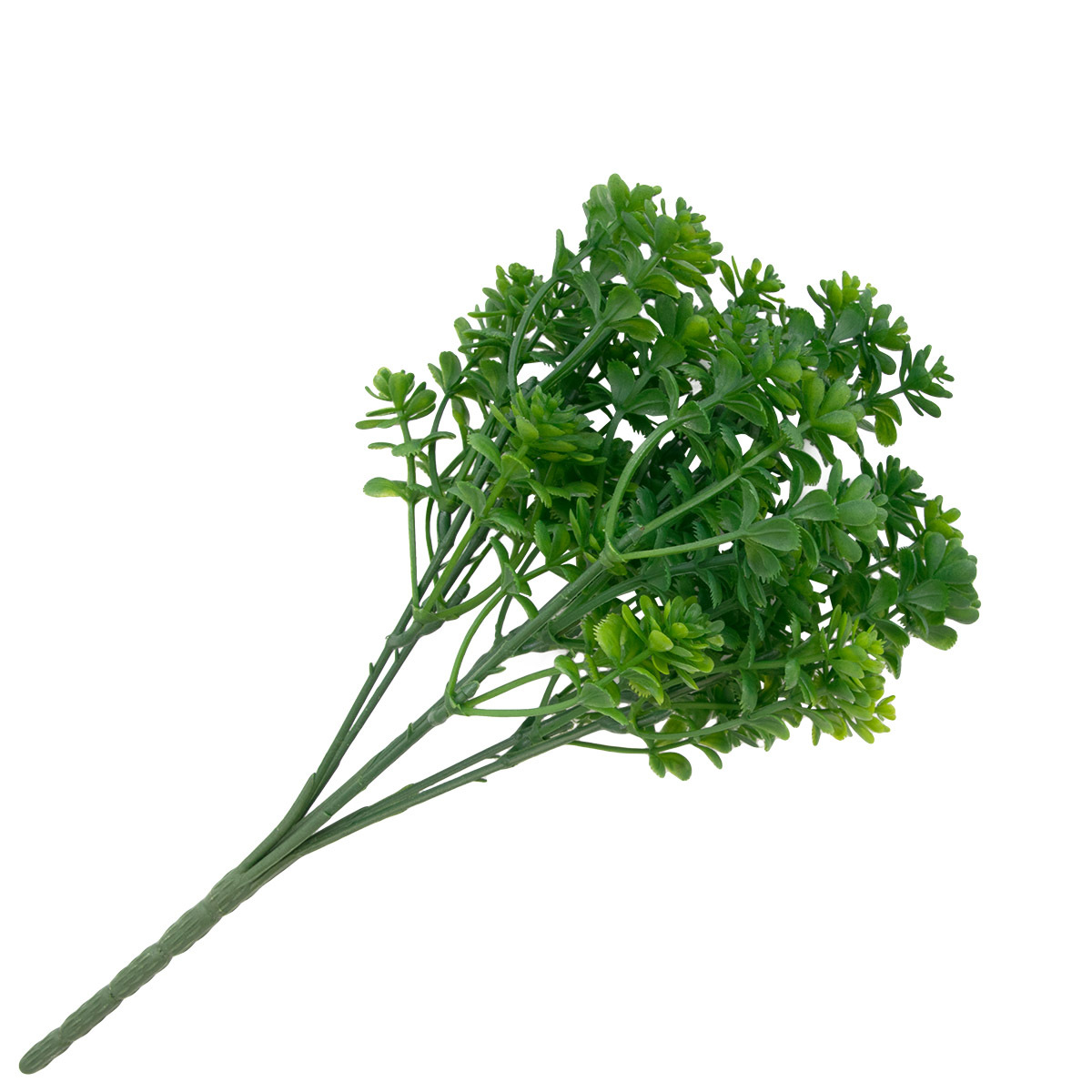 Использование букетов и композиций из искусственных цветов в декоре интерьера-это тренд, который в последнее время не уступает украшению живыми срезанными цветами. Из отдельных растений, букетиков, веточек и объемных элементов можно составить авторские декоративные композиции для оформления интерьера в жилых помещениях и общественных учреждениях. Какими бы красивыми, завораживающими и эффектными не были цветы, без декоративной зелени они теряют свою выразительность. Ветка искусственной зелени изготовлена из высокотехнологичного материала. Для того чтобы композиция выглядела еще более нарядно, к веткам зелени можно приклеить миниатюрные бусины, бантики. Ветки зелени украсят любую композицию и придадут ей законченный вид. Размер: 27 см Количество: 2 шт/упак