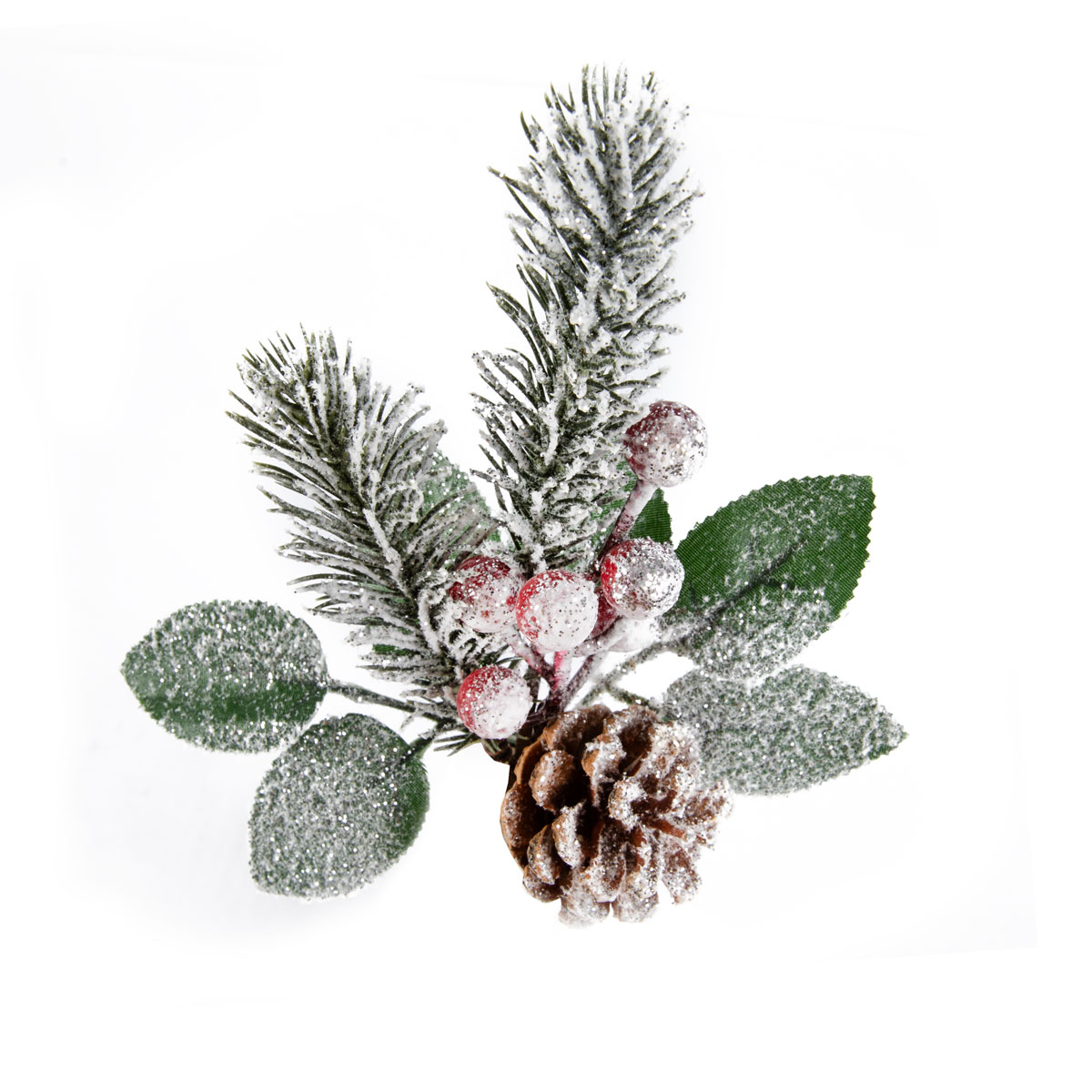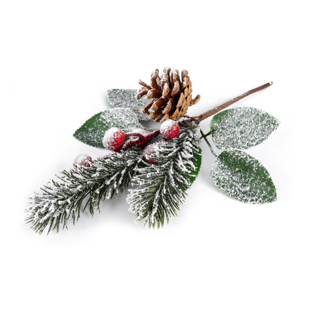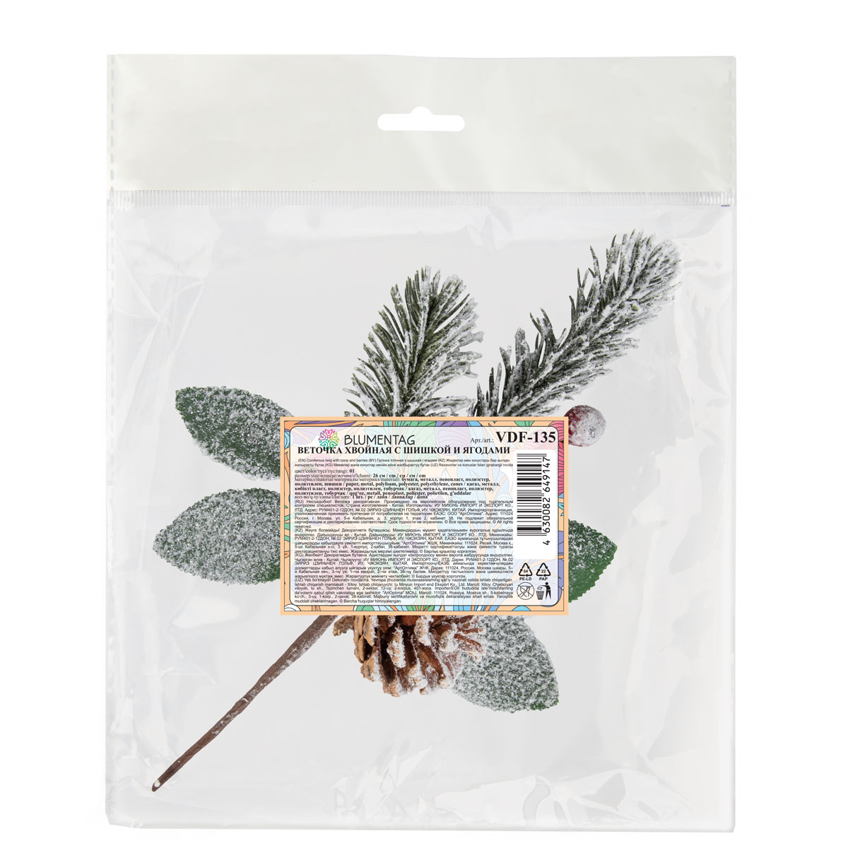 Веточка декоративная хвойная с шишкой и ягодами 26 см, 3 шт, 01, Blumentag
