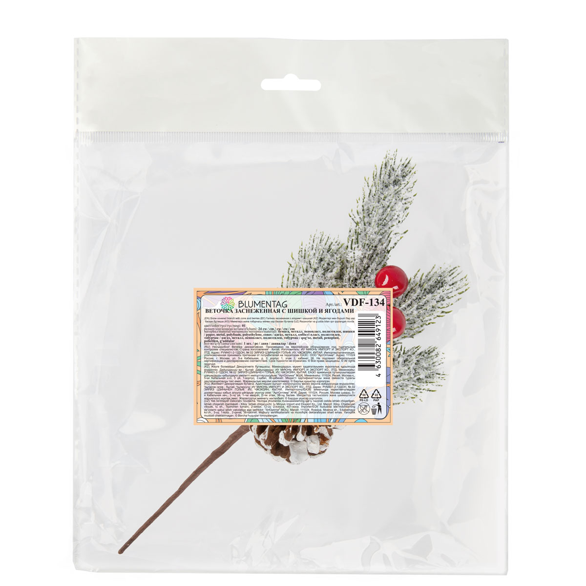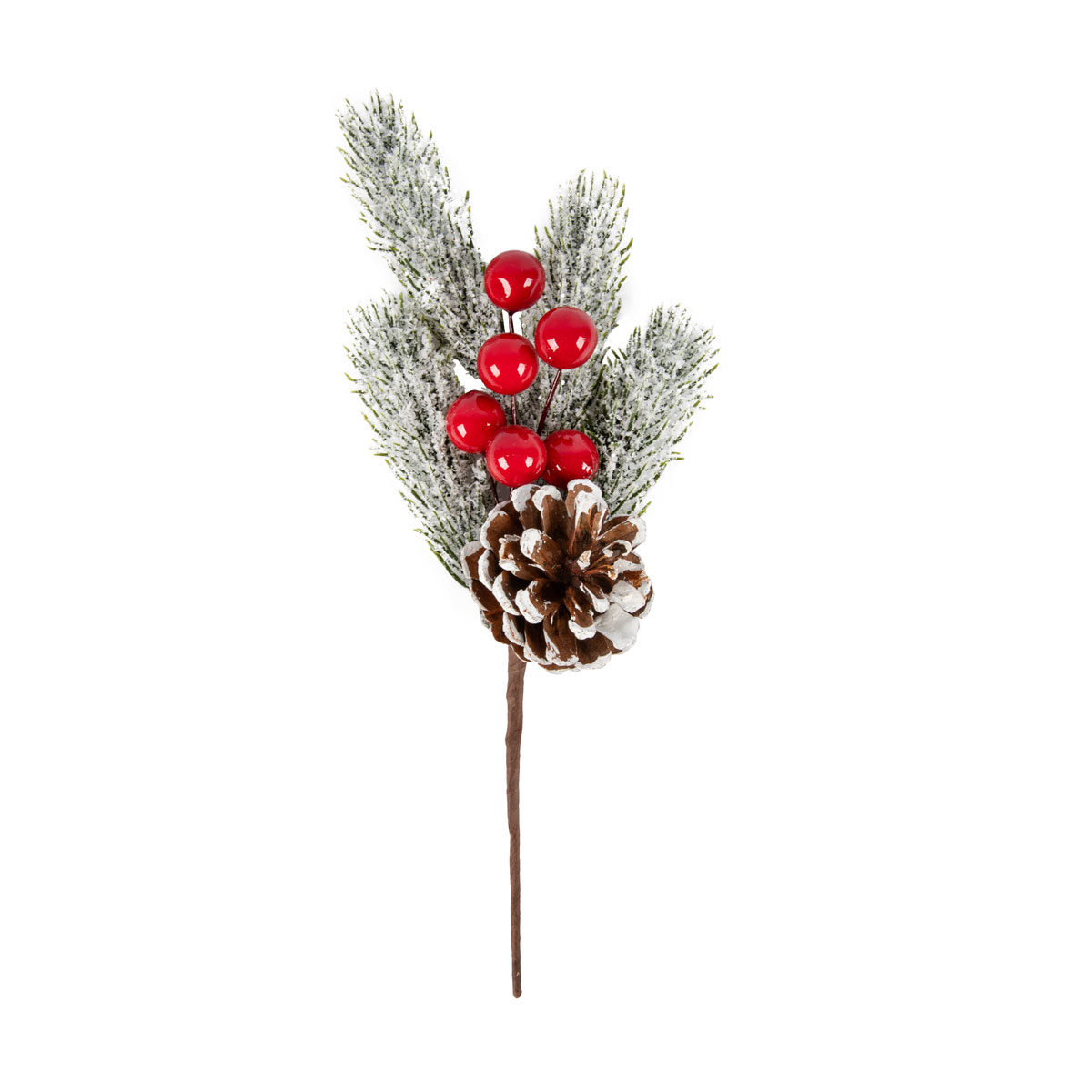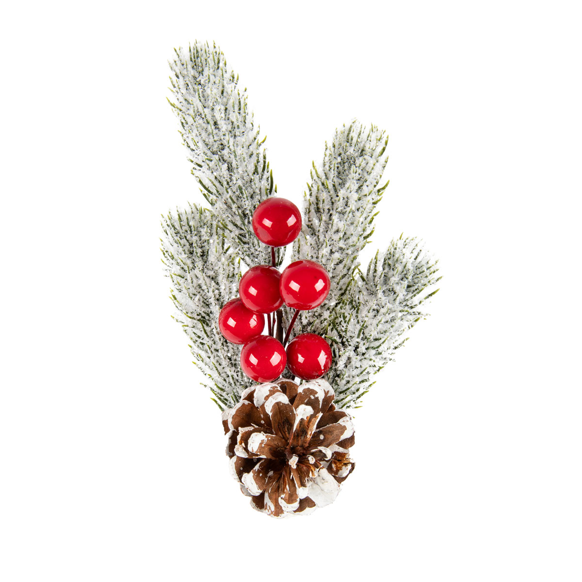 Веточка декоративная заснеженная с шишкой и ягодами 24 см, 3 шт, 01, Blumentag