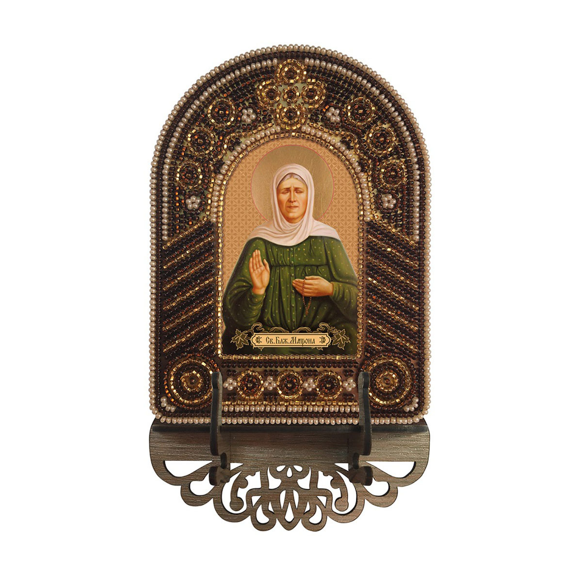Бисер – традиционный материал для украшения икон. Его ценят за яркий блеск, многообразие цветовой палитры, долговечность. Икона 'Святая Блаженная Матрона', украшенная бисером, займет почетное место в вашем домашнем иконостасе или станет прекрасным подарком верующему человеку. Пяльцы и рамки для вышивания не потребуются – твердая основа с перфорацией отлично держит форму. Фигурная рамка с крепежными элементами и подставкой придает иконе торжественность и завершенность. В наборе: бисер PRECIOSA №10, основа для вышивания Perfostitch (высокопрочный материал с перфорацией и нанесенным рисунком-схемой), оборотная часть иконы, подставка с крепежными элементами, игла для вышивания бисером, нить для вышивания бисером, цветная схема, инструкция. Количество цветов: бисер – 4.