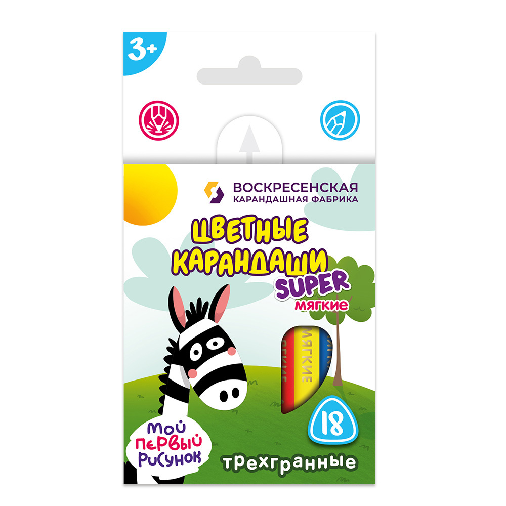 Набор цветных карандашей "Зебра" 18 цв., трехгранные, диаметр 7.0 мм., длина 88 мм., отделка корпуса в цвет стержня, заточенные, в картонной коробке с европодвесом. На лицевой стороне картинки изображен срез профиля тела карандаша, относящийся к данному набору карандашей. Цветные карандаши Super предназначены для занятий рисованием с детьми, имеют прочный, но очень мягкий стержень, с отличной пигментацией и яркостью рисунка. Наборы составлены из основных цветов цветового круга.