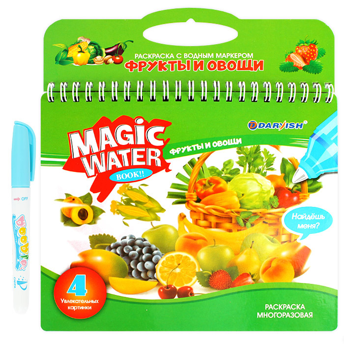 Водная многоразовая раскраска с маркером Фрукты и овощи, Darvish, DV-12976-4