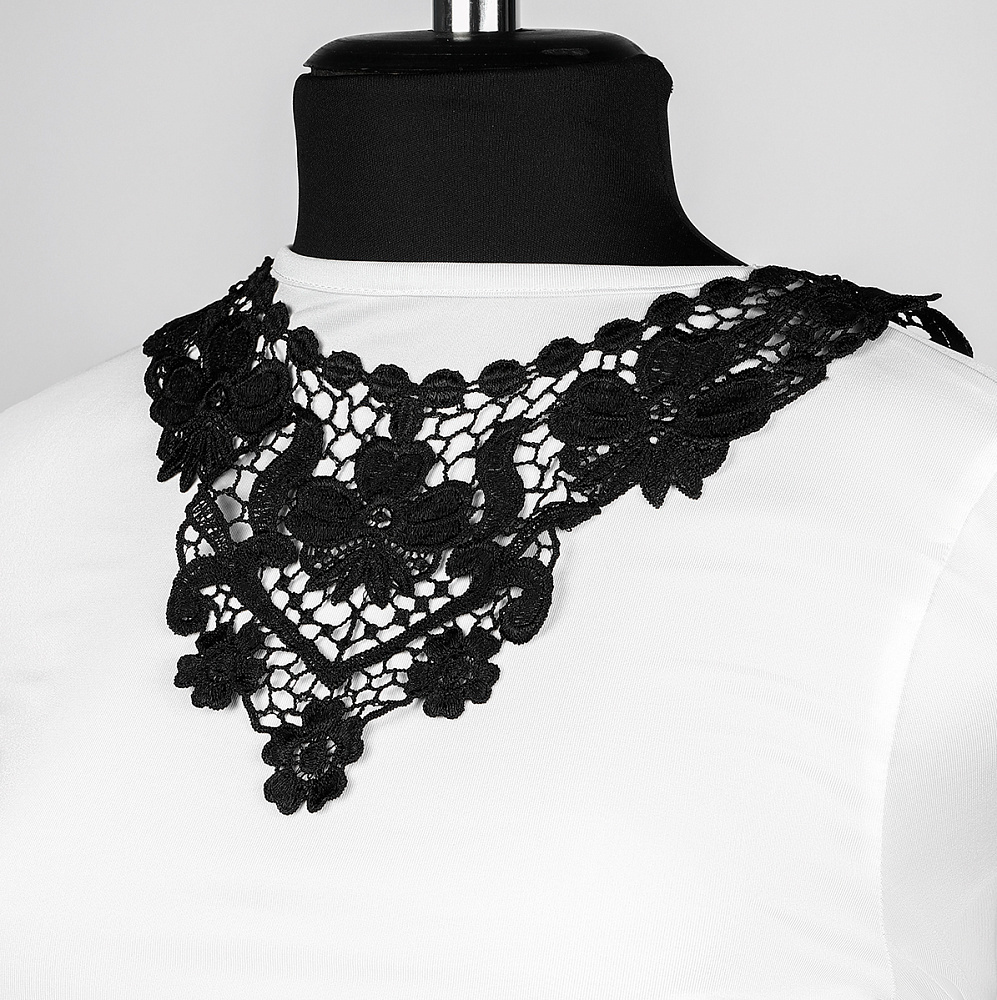 Пришивной кружевной воротник 29х23 см, цв.02 черный, уп.5 шт, диз.HX-35, Kruzhevo
