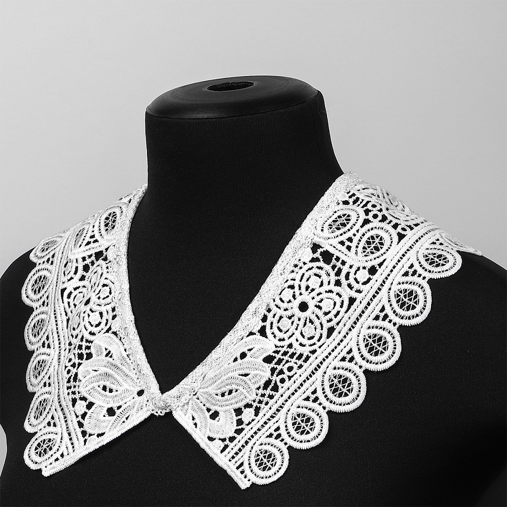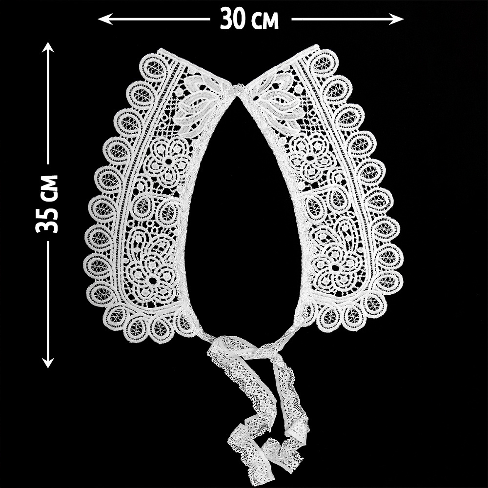 Накладной кружевной воротник 30х35 см, матовая нить Kruzhevo TBY.13/194, цв.белый уп.1шт