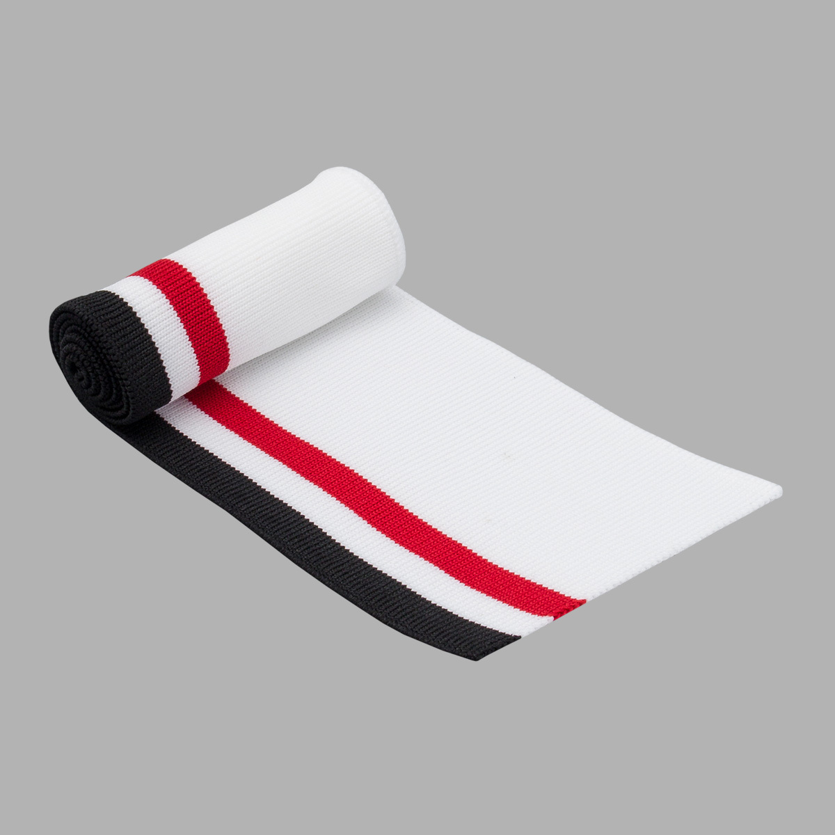 Воротник для поло 7х43 см, трикотажный в полоску, 100% полиэстер, цв. белый/красный, 3AR3039