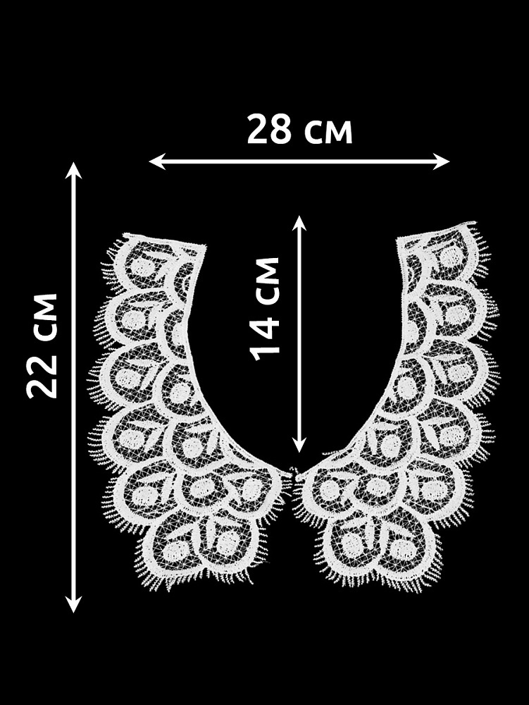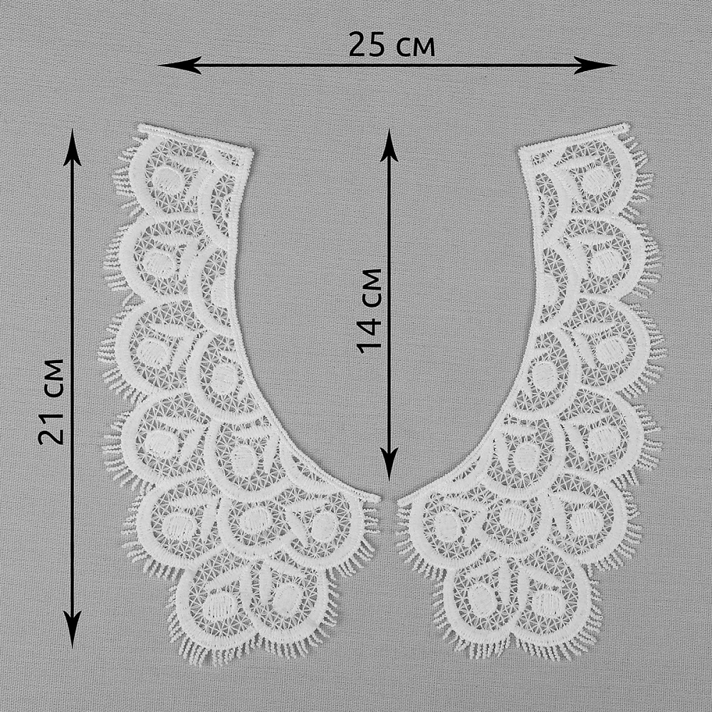 Пришивной кружевной воротник гипюр Kruzhevo 18.5х9 см, TBY.HX-05, цв.01 белый, уп.25 пар