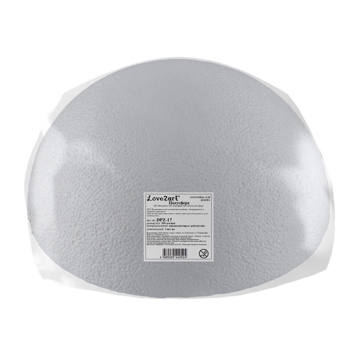 "Love2art" DPZ-17. Заготовка из пенопласта "полусфера" используется при создании топиариев, творческих поделок, композиций, украшений и предметов интерьера.