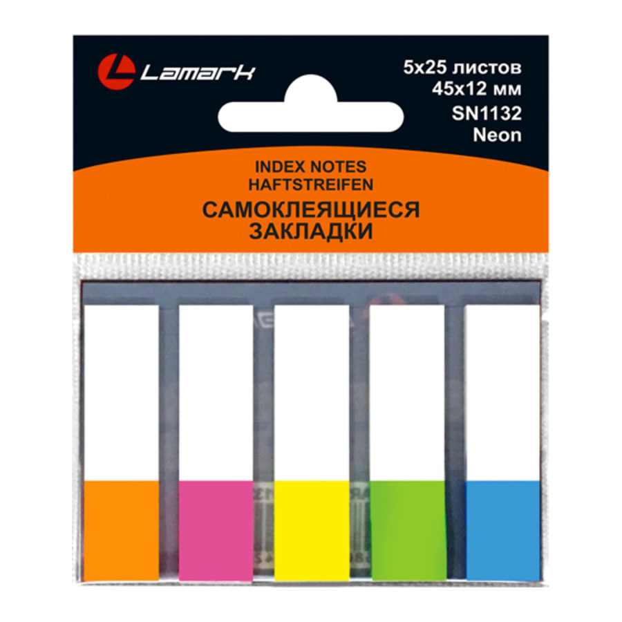 Закладки 45x12 мм, 5x25 л., неон, пластик, LAMARK1132