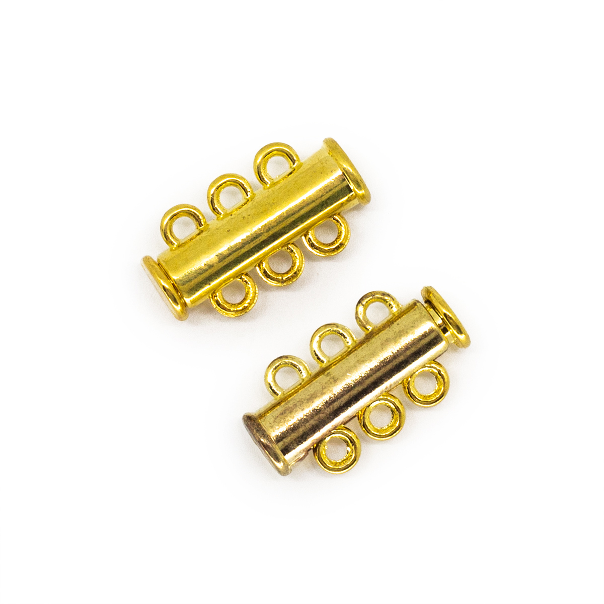 Замок-слайдер магнитный на 3 нити, 19х10 мм, 2 шт цв. золото, 29372