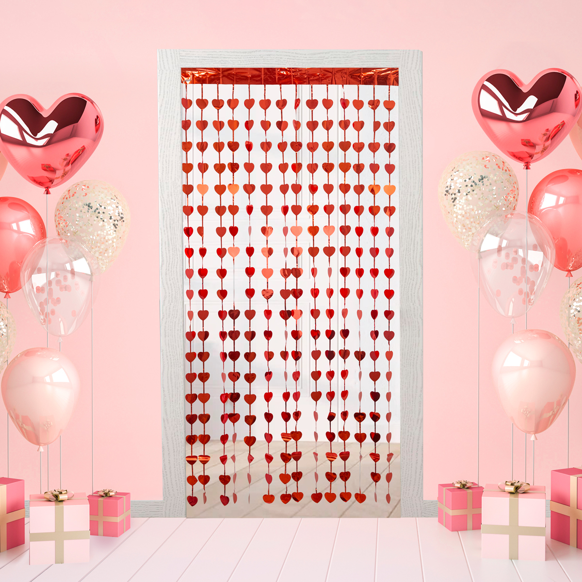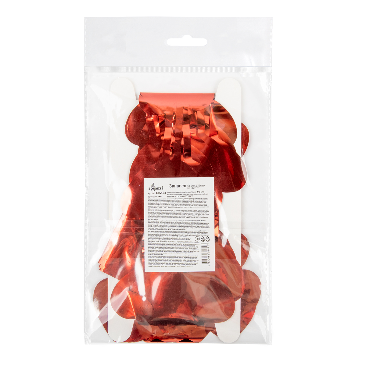 Занавес праздничный фигурный 100х200 см, 01-красные сердечки, Boomzee GBZ-08