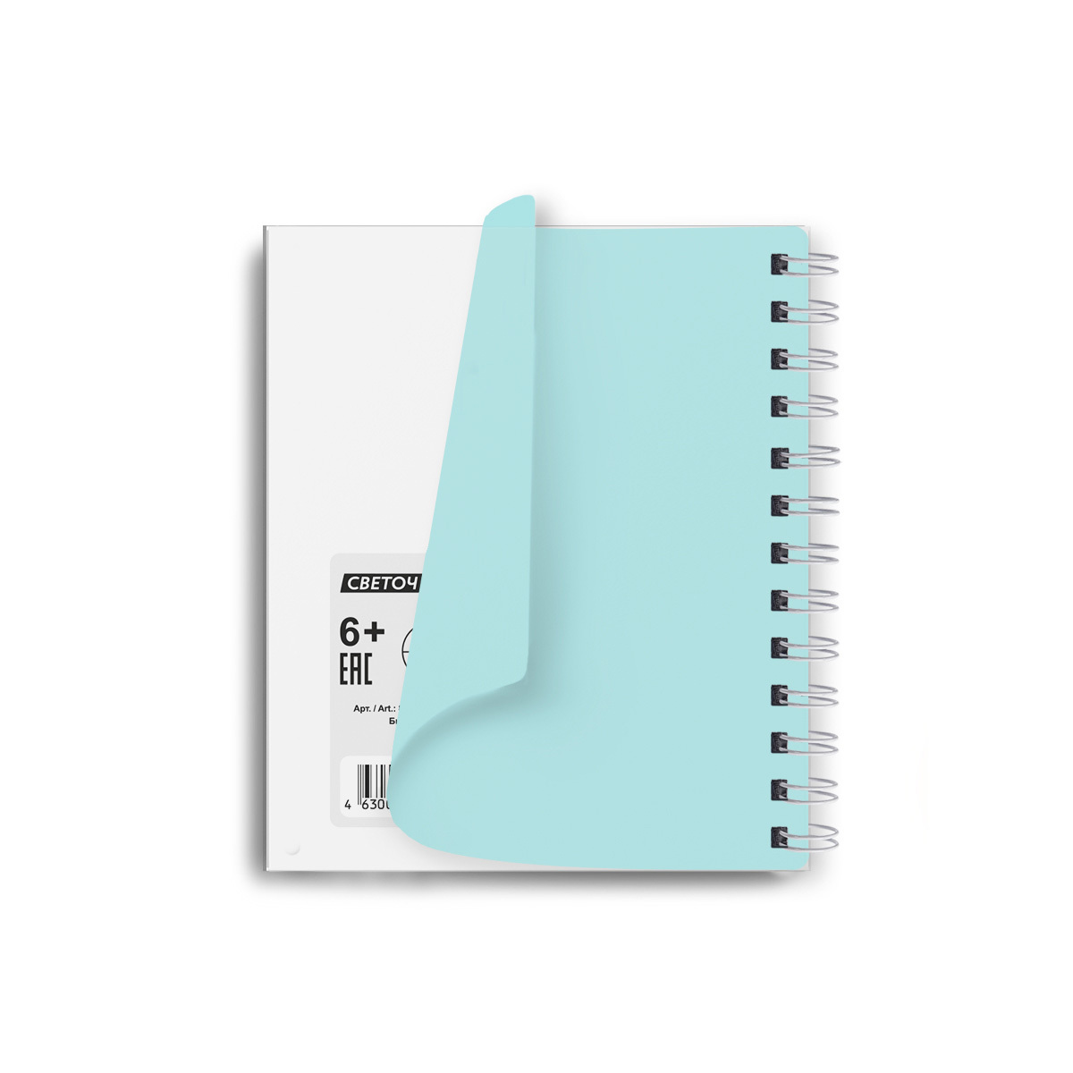 Записная книжка с пластиковой обложкой, тиснение серебряной фольгой, 500 мкр, на гребне, A6 80 л., 4 шт, клетка, Бирюза 01046, Светоч 80ЗК33