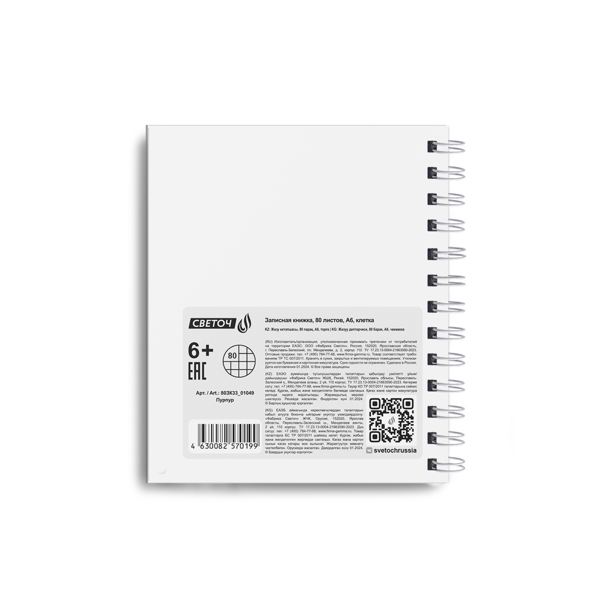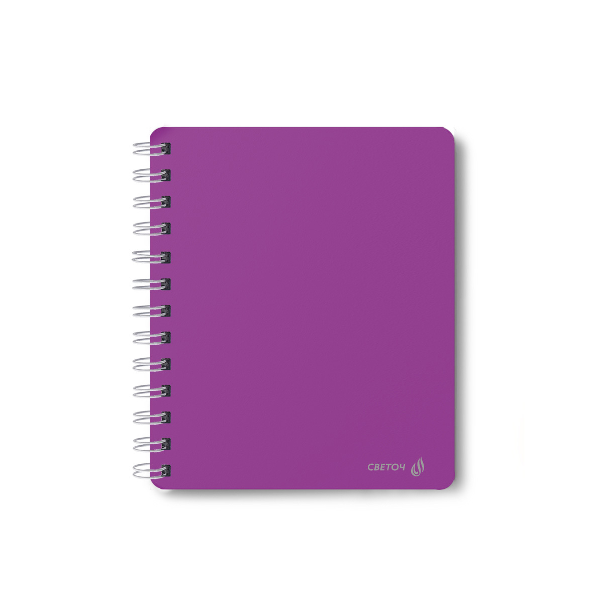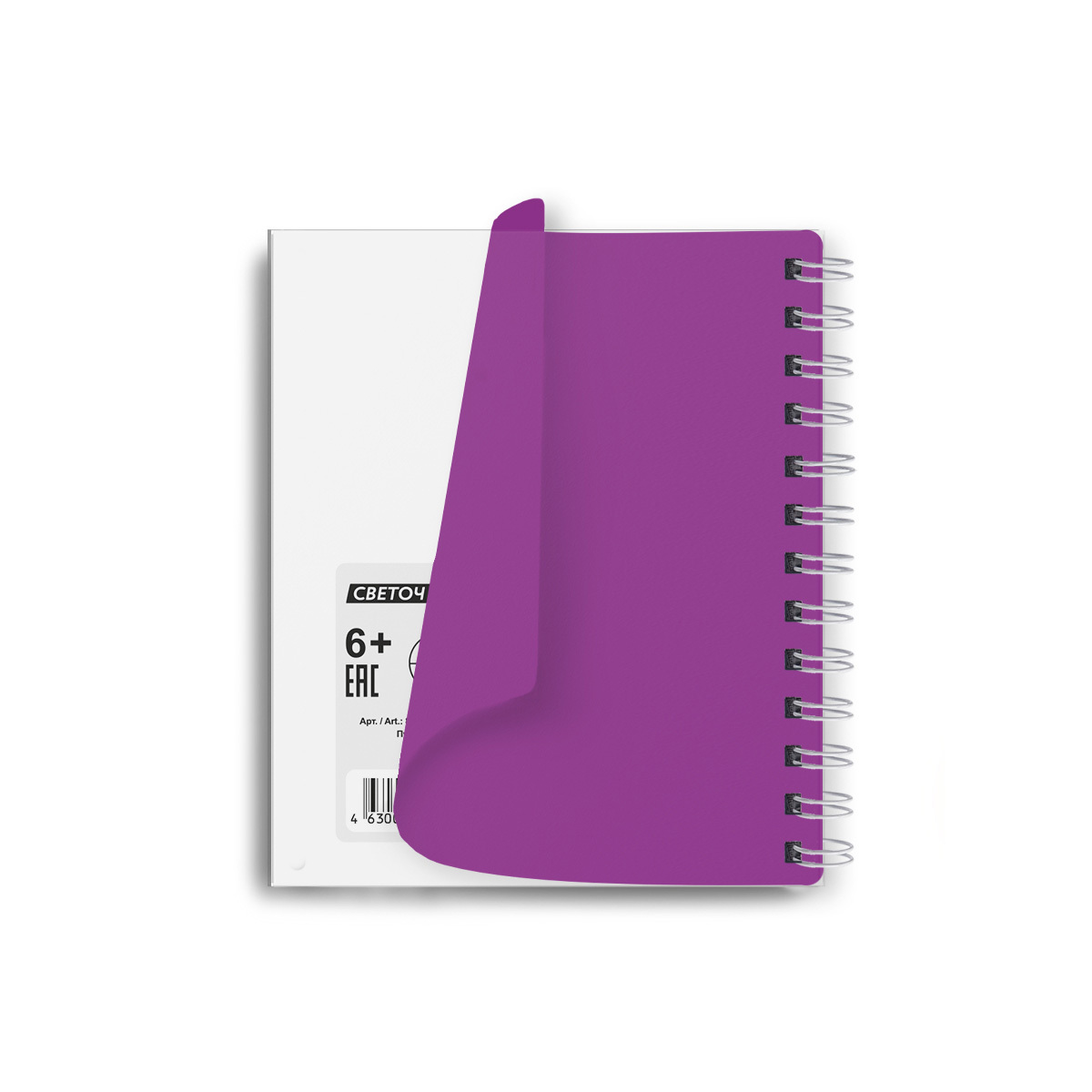 Записная книжка с пластиковой обложкой, тиснение серебряной фольгой, 500 мкр, на гребне, A6 80 л., 4 шт, клетка, Пурпур 01049, Светоч 80ЗК33