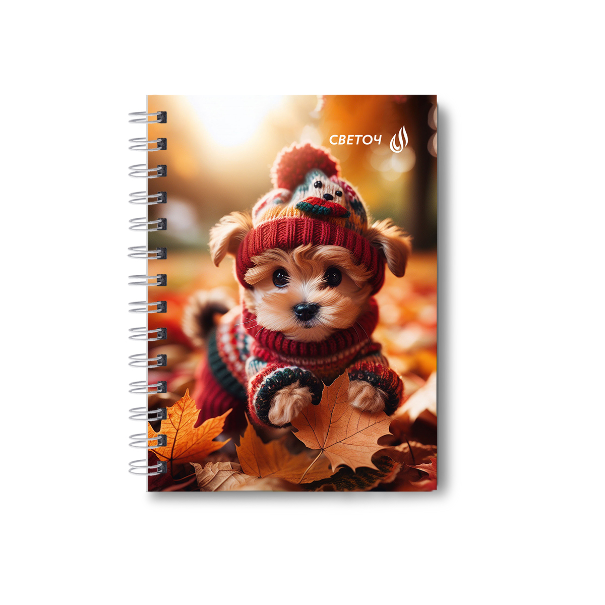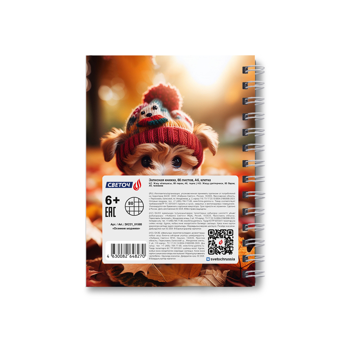 Записная книжка с твердым переплетом, глянцевая ламинация, на гребне A6 80 л. 4 шт клетка, Осенние модники 01588, ЗК221 Светоч
