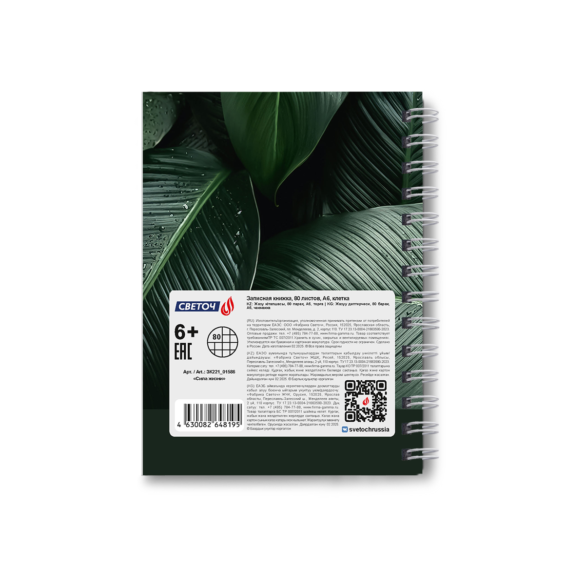 Записная книжка с твердым переплетом, глянцевая ламинация, на гребне A6 80 л. 4 шт клетка, Сила жизни 01586, ЗК221 Светоч