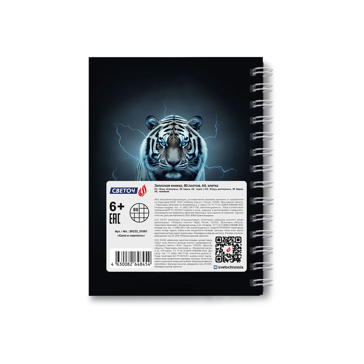 Записная книжка с твердым переплетом, матовая ламинация, на гребне A6 80 л. 4 шт клетка, Сила и смелость 01581, ЗК223 Светоч
