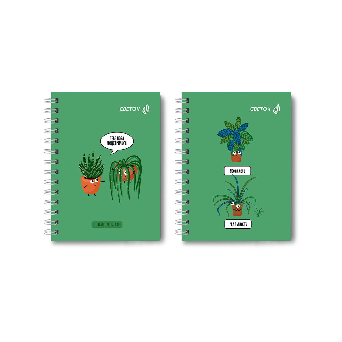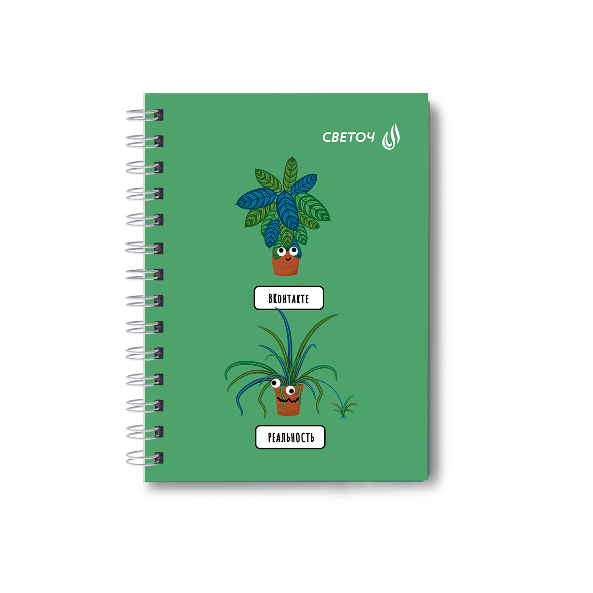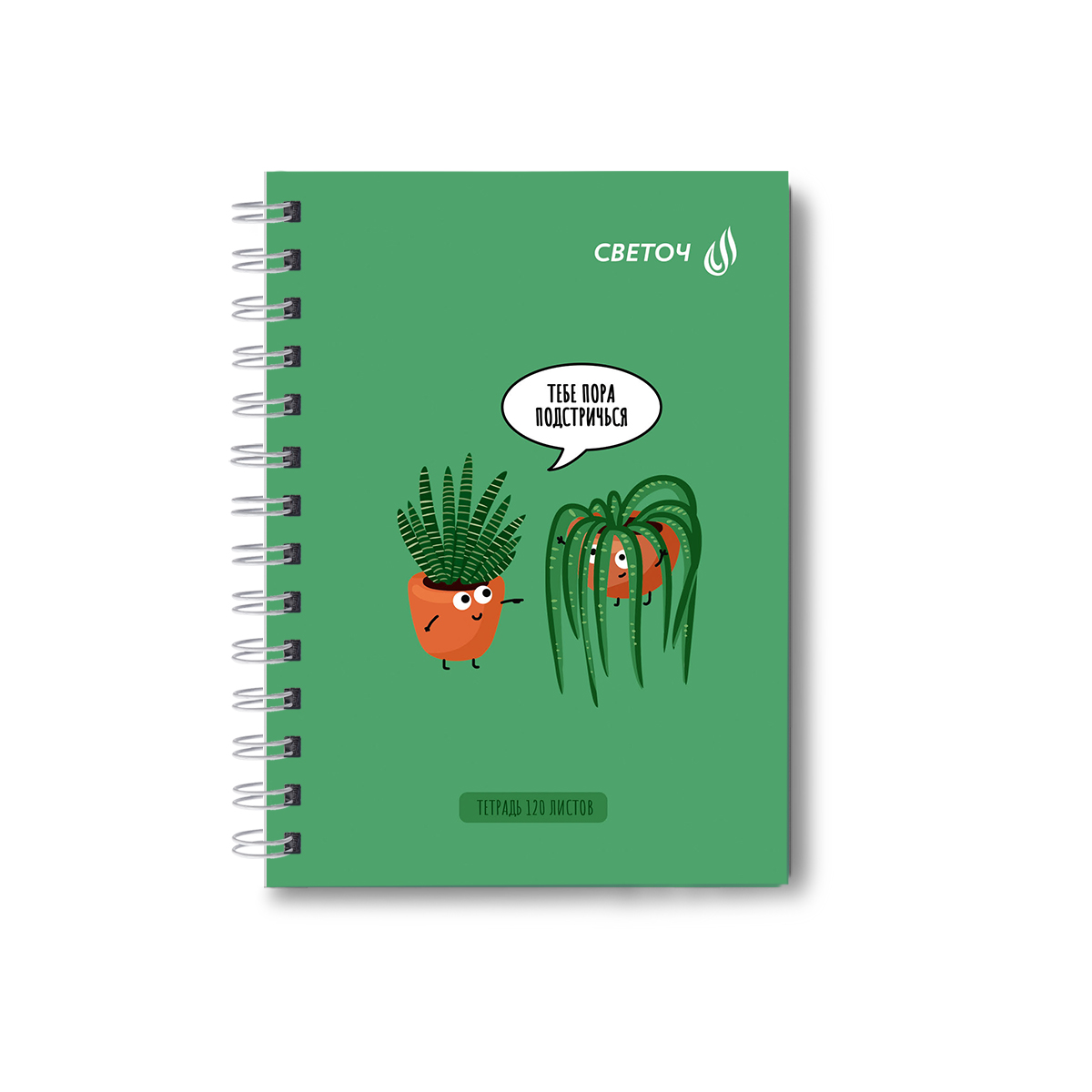 Записная книжка с твердым переплетом, матовая ламинация + выборочный лак, на гребне A6 120 л. 4 шт клетка, Зелёный оптимист 01592, ЗК224 Светоч