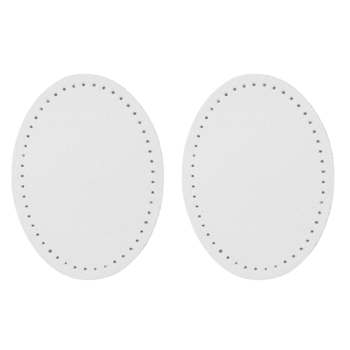 Заплатки пришивные из кожи, овал 6х8.2 см, с перфорацией, 2 шт, 100% кожа, 08 белый, 9114