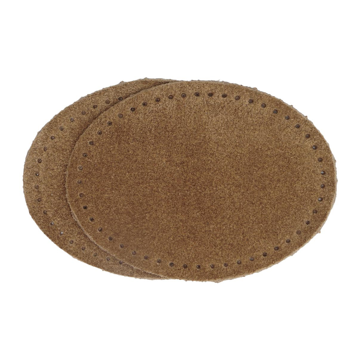 Заплатки пришивные из замши, овал 6х8,2см с перфорацией, 2 шт, 100% кожа, 32 кэмел, 59114