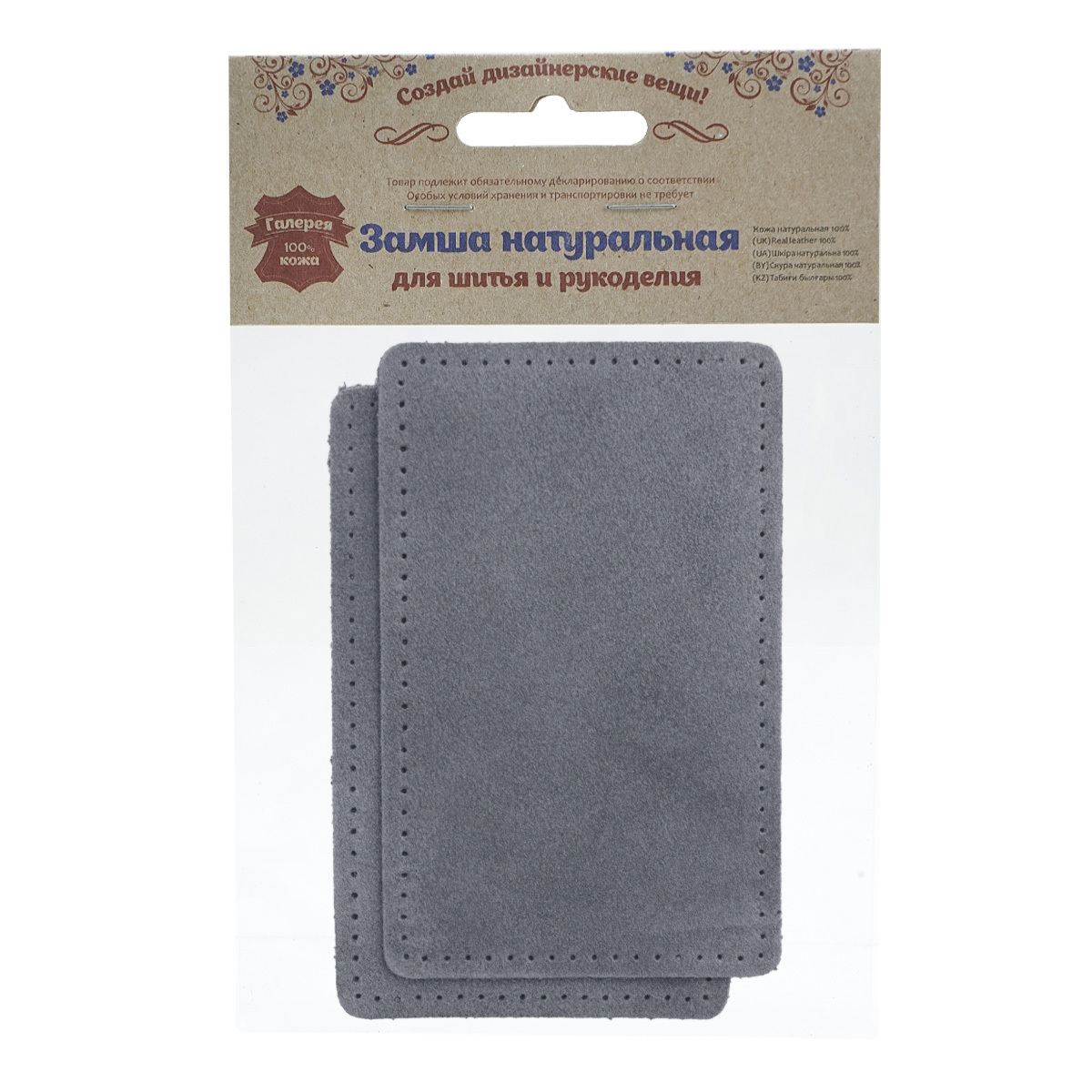Заплатки пришивные из замши, прямоугольник 8х12,7см с перфорацией, 2 шт, 100% кожа, 26 серый, 59123
