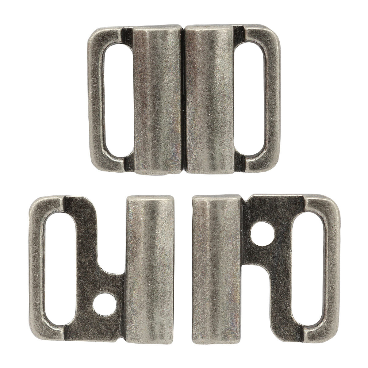 Металлическая разъемная застежка для верха купальника бикини, а также лифов, поясов. Как правило, такие застежки устанавливаются на купальники или бюстгальтера, застежка на которых находится спереди. Прочная и аккуратная фурнитура – деталь, без которой не обойтись при пошиве или ремонте бельевых изделий. Изготовлена фурнитура из металла. Материал экологически чистый, безопасный и износостойкий. Нижнее белье — важная деталь гардероба любой женщины, а использование качественной фурнитуры придает ему Красивый внешний вид, Удобство и Долговечность. Шейте и носите роскошное, комфортное и качественное белье и будьте всегда в прекрасном настроении. Цвет: темное серебро Размер:15мм