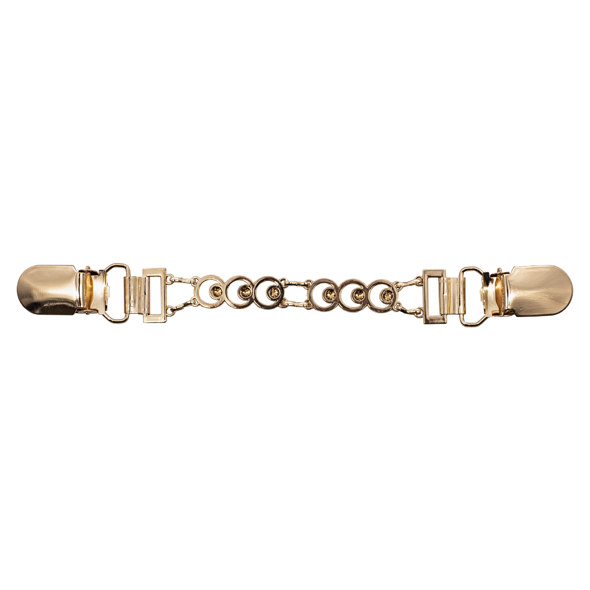 Застежка для кардигана представляет собой две клипсы, соединенные декоративной цепочкой. Особенности: – Не требует пришивания, перед стиркой или химической чисткой застежку следует снять. – Изготовлена из металлического сплава, не подвержена коррозии, прочная и выдерживает стандартные эксплуатационные нагрузки. – Сочетается с вещами любой фактуры и вязки. – Благодаря продуманному дизайну это не только застежка, но и украшение. В ассортименте представлены различные цвета – выберите тот, который лучше сочетается с вашими вещами. Размер: ширина 19 мм, общая длина 175 мм.